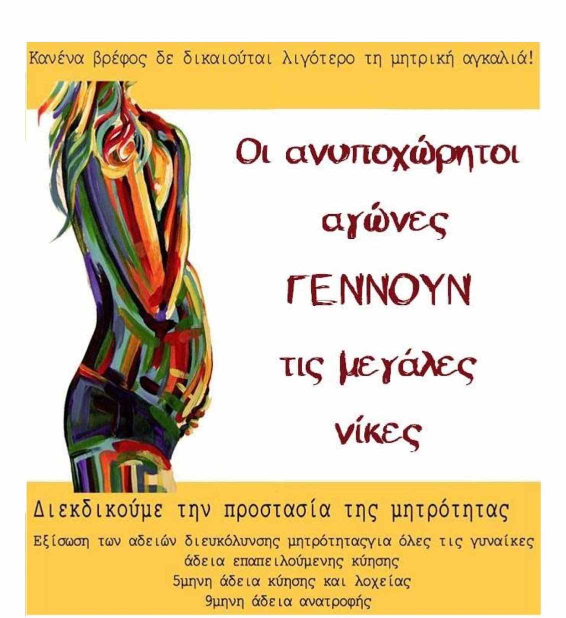 Στο πλαίσιο της Καμπάνιας για την πλήρη προστασία της κύησης και της μητρότητας, το Συντονιστικό Αναπληρωτών Αδιόριστων Καθηγητών ετοίμασε ένα βίντεο με θέμα τις δυσκολίες, τους κινδύνους, τις διακρίσεις αλλά και τους εκβιασμούς με τους οποίους έρχονται αντιμέτωπες έγκυες γυναίκες και μητέρες, με ελαστική σχέση εργασίας, στο χώρο της δουλειάς τους. Στο βίντεο συμμετέχει η Ερατώ Ταγαρίδη, μέλος του ΔΣ του Σωματείου μας, που εκθέτει τα προβλήματα των ΙΔΟΧ εργαζόμενων μητέρων στο υπουργείο Πολιτισμού, που απορρέουν από τη μη τήρηση της αρχής της μη διάκρισης μονίμων και ορισμένου χρόνου υπαλλήλων.
